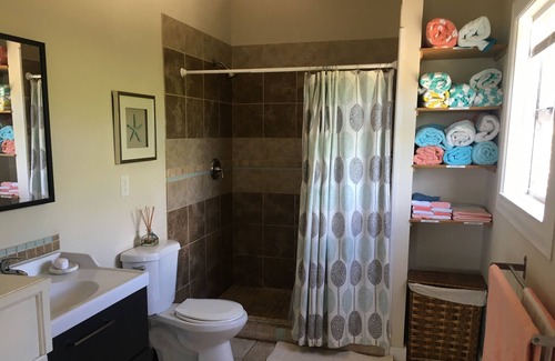 There are two single person kayaks located at Rainbow Bay Beach for easy access, four beach chairs, snorkeling gear, inflatables, noodles, boogie boards, beach towels and a large cooler (ice packs in the freezer) available for your use.