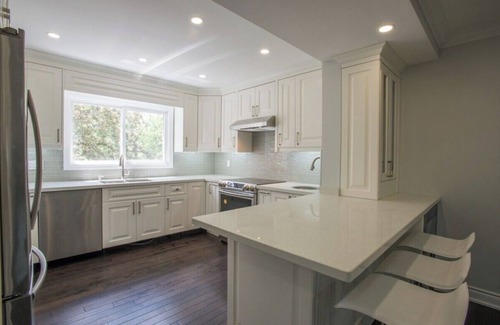 Escape to luxury in this renovated 4-bed Thornhill townhome. With 2 fully equipped kitchens, fenced backyard, deck access, 3 parking spaces, 2 Netflix-ready TVs and easy snow removal. Only 25-45 min from DT Toronto, this retreat offers tranquility & convenience.