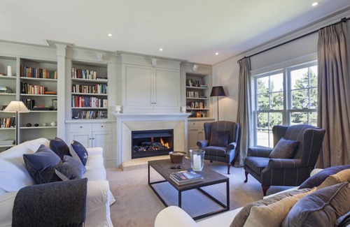 Reflective of its alpine area this gorgeous residence features the use of large wooden beams and schist stone and has the unique feel of a luxury Georgian farmhouse.