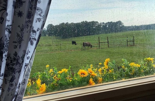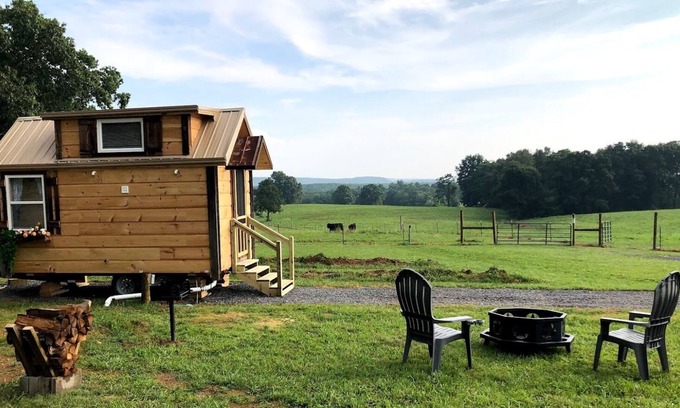 The tiny house was built with hikers and couples in mind. It is 8x16, indeed a wee gem. The tiny house is situated on our extended 50-acres and has a spectacular sunset view with the Scottish Highland Cattle just outside your door.