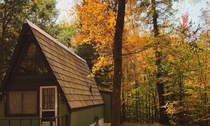Highland Haus- Cozy 1975 Aframe Cabin- short walk to lake | Ski Chalet in Stoddard