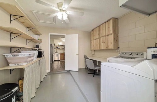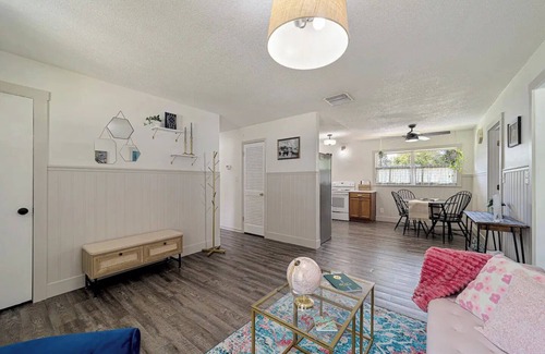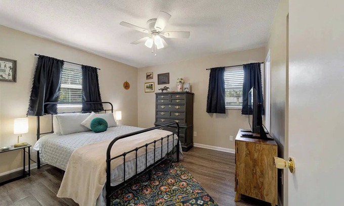 Relax with the whole family at this cozy house with lots of outdoor space. Close to everything Ocala has to offer and its' surrounding areas. City parks all around make it a great destination for families. Designated office area with high speed fiber internet is available. This home offers 3 bedrooms: 2 queen beds, and a twin trundle. TVs in the living room and main bedroom are set up for streaming. The lovely sitting area is relaxing and ideal for kicking back with a good book. The outdoor space has a large fenced backyard with a pergola and sitting area.