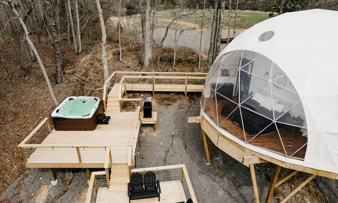 Meet the newest addition to Your Glamping Adventures property lineup. Enjoy the privacy of a peaceful, secluded setting, complete with everything you need for a one-of-a-kind getaway. Heating and A/C, full bathroom, Luxury Saatva mattresses & bedding. Functional kitchenette, and private outdoor living space with private hot tub, grill, and natural gas fire pit.