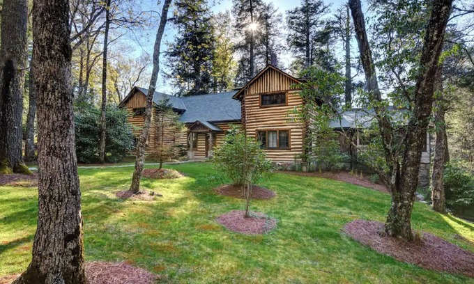 Get away from it all at this glorious private mountain estate known as Big Billy Cabin! This historic and updated Joe Webb log cabin is set on 24 wooded acres, with over 1,300 feet bordering Big Creek and Pinky Falls. The pet-friendly retreat, surrounded by old-growth Hemlocks, is 3 miles to Downtown Highlands. The 3-story cabin has large covered porches perfect for entertaining, 7 fireplaces, a copper soaking tub and Viking range. Big Billy Cabin is truly a spectacular place to make memories!