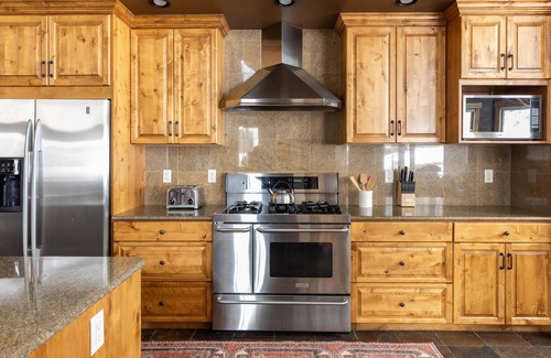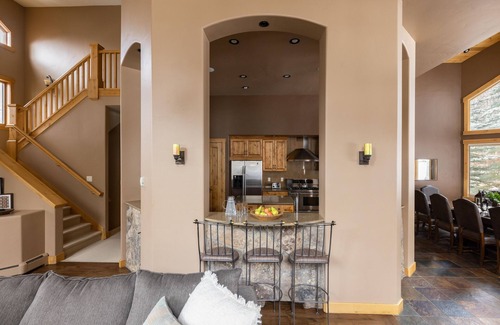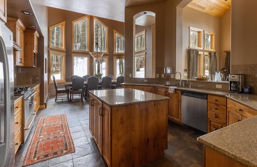 Unwind in style at this breathtaking mountain home surrounded by snow-capped hills and aromatic pine trees. Upon entry, you’ll be greeted by soaring vaulted ceilings, tasteful wood trimmings, and a neutral color palette accentuated by bright pops of color. With amenities that can be enjoyed year-round, including a hot tub and grill, there is no off-season for this home. Whether you’re unwinding after a day of hiking or skiing, your crew can indulge in cocktails by the fireplace, enjoy al fresco dining on the patio, or cozy up in the media room for a movie night. Cheers to alpine living at its best!