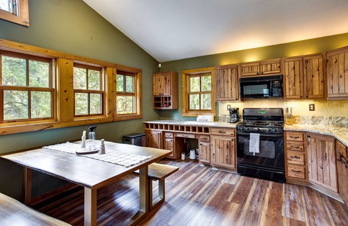 Experience Colorado in its purest form at this secluded Almont cabin. Set among towering pine trees, this 2-bedroom, 2-bathroom vacation rental serves as the ideal home base for outdoorsy families and friends traveling to the area. In the summer, hike, bike, whitewater raft, or sightsee with stunning mountain views as your backdrop. In the winter, you’ll be located just a short drive away from Crested Butte and over 100 ski runs. The fun never ends in the Rocky Mountains!