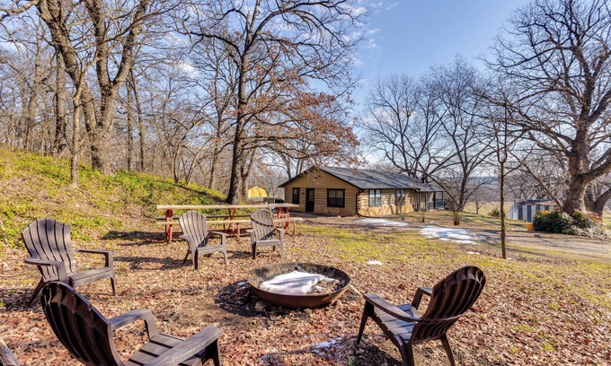 Escape the hustle and bustle of daily life and retreat with your loved ones to this 3-bed, 2-bath Sulphur vacation rental! The cabin has a spacious living area, a full kitchen, and private outdoor spaces to relax in after your well-spent days. Visit Turner Falls, explore Chickasaw National Recreation Area, fish in Lake of the Arbuckles, or catch thrills with the kids at Air Donkey Zipline Adventures. It’s up to you!