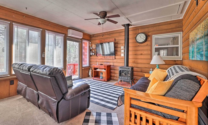 Big Pocono adventure awaits upon booking this cozy East Stroudsburg log cabin. The 3-bed, 2-bath vacation rental hosts a gas fireplace, multiple living areas, a private deck, and access to the area's state parks and renowned outdoor recreation. Shred the slopes at Shawnee Mountain Ski Area, take a chance at Mount Airy Casino Resort, or hike to Bushkill Falls! Your next mountain getaway is calling!