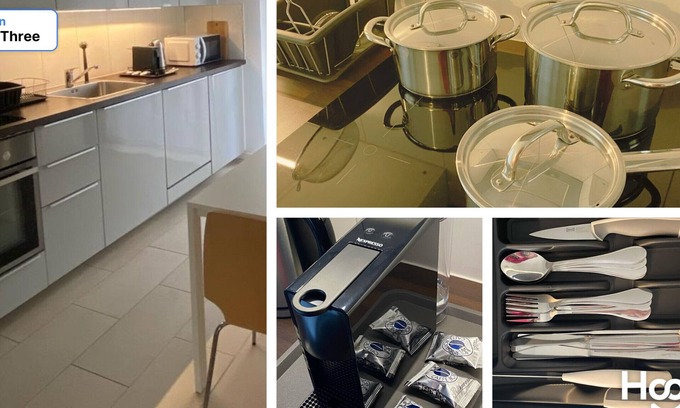 With elegant and calming decor, the apartment is just a short walk from the lively nightlife, with supermarkets, bars, and public transport less than 100 meters away.