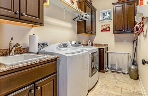 ☀ Washer and Dryer, marble countertops, stainless steel appliances with open floor plan and spacious living area.