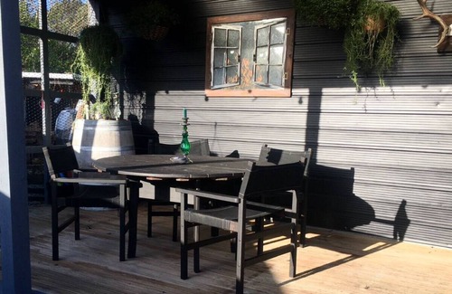 A huge deck with outdoor dining and a spa, glorious at night watching the stars and sipping your wine.