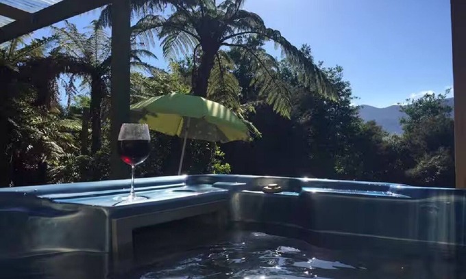 Sitting top a small hill with glorious bush & mountain views is our cottage nestled in a private garden, full of tuis, bellbirds, pigeons, fantails and quail.