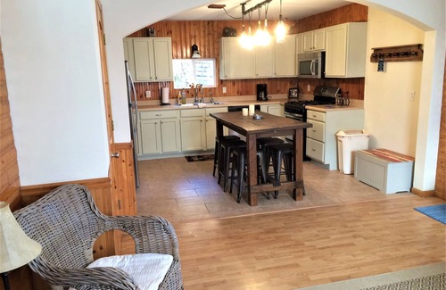 Hillside Cottage is a whole house rental in Downtown Hermann. You will have this entire 1300 sq ft home with 4 bedrooms and 2 full baths all to yourselves. The full kitchen has all the appliances, dishes, pans, wine glasses etc. The large dining table seats 8 people and is a great place to enjoy a glass of wine while your friends prepare dinner. The bright living room and open concept kitchen are a great space for gathering with friends with plenty of space for all to enjoy. There is a lovely patio with table and chairs for that morning cup of coffee or afternoon glass of wine. Our home is located downtown Hermann and it is walking distance to shopping, wineries, restaurants, and bars. Come make Hillside Cottage your home away from home while visiting Missouri Wine Country.