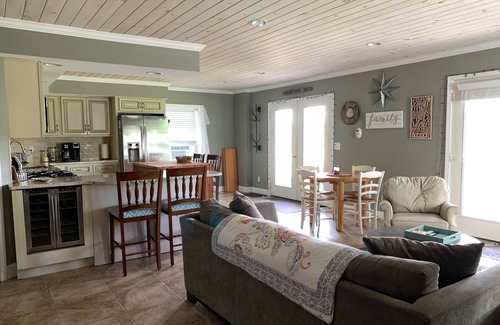 Our home is located across the road from the steps to our lake access. Please feel free to enjoy the waterfront and dock but the boat is not for use.