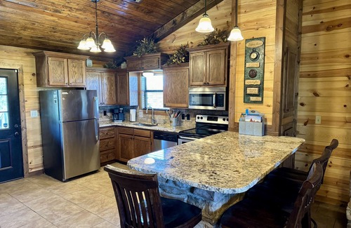 This cabin offers a cozy fireplace and an oversized outdoor fire pit area with four Adirondack chairs, which make for a great place to roast marshmallows, make S'mores or just relax and watch the stars. Plus, we provide firewood at no cost, so one less thing to worry about!