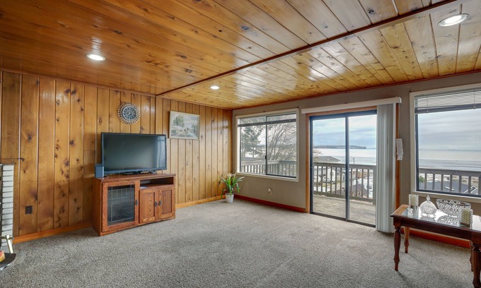 Hike, swim, kayak, and whale watch just steps from your front door at this quaint 2-bed, 1-bath abode in Blaine. If the optimal location hasn't enticed you already, the impeccable water views likely will, as this home boasts a crystal-clear vantage point of the surrounding landscape. After a day of exploring in Birch Bay State Park or family-friendly fun at the Birch Bay Waterslides, come home to cozy up by the wood-burning fire, or admire a breathtaking sunset from the spacious deck.