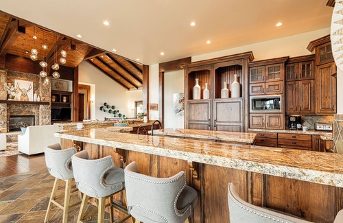 From the moment you arrive, the estate's grand scale, elegant finishes, and sweeping views from nearly every room set the tone for an unforgettable stay. With five spacious en suite bedrooms, two powder rooms, and space to comfortably sleep 12 guests, this home is perfect for families or groups seeking a refined mountain escape.