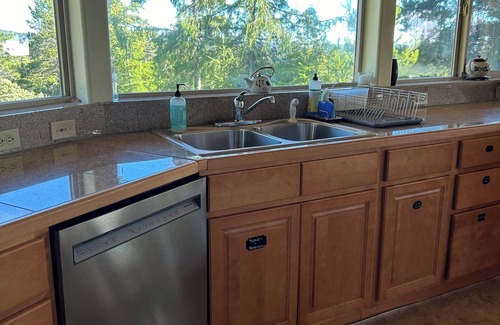 Round house perfect for private getaway. On top of a hill with an ocean view from almost every room. Lots of trails around the house to enjoy as well as Mercer and Collard lake just up the road. Master bedroom has attached bathroom with shower/tub and king bed. Two bedrooms have queen sized beds and large closets, fourth bedroom has twin and ocean view. There is a small futon upstairs in the crows nest. A new deck with a grill. A few minutes away from the grocery store and countless amazing beach trails off hw 101 as well as downtown Florence which is full of unique shops and restaurants.