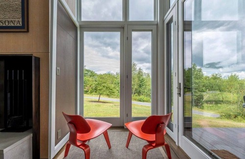 With 360-degree views of the Catskill and Berkshire Mountains from the highest point in Hillsdale, Hilltop is a contemporary home with complete privacy and everything you need, including a pool, hot tub, fireplaces in the living room, screened porch and guest house.