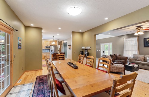 This thoughtfully designed 4,000+ square foot estate balances the distinctive character of a large Northwoods residence complemented by character with refined, modern amenities. With room to comfortably accommodate up to 19 guests (16 adults max), you’ll find generous gathering spaces, inviting bedrooms, and private nooks for quiet moments — all infused with warm, timeless style.