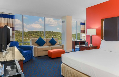 Hilton Branson Convention Center offers 294 accommodations with MP3 docking stations and laptop-compatible safes. Pillowtop beds feature down comforters and premium bedding. LCD televisions come with premium cable channels. Refrigerators and coffee/tea makers are provided. Bathrooms include shower/tub combinations, designer toiletries, complimentary toiletries, and hair dryers.