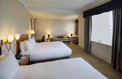 Hilton Cincinnati Netherland Plaza offers 561 accommodations with MP3 docking stations and safes. Pillowtop beds feature premium bedding. Flat-screen televisions come with premium satellite channels and pay movies. Rooms have partially open bathrooms. Bathrooms include shower/tub combinations, designer toiletries, and hair dryers.