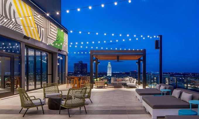 Hilton Garden Inn Austin University Capitol District offers 214 accommodations with laptop-compatible safes and coffee/tea makers. Pillowtop beds feature down comforters. 55-inch Smart televisions come with premium digital channels and Netflix.