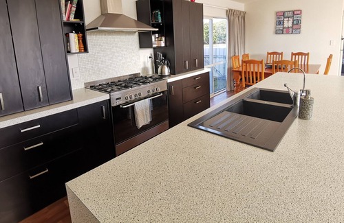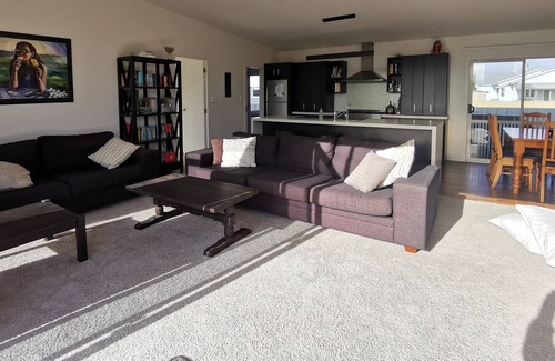 The open-plan living, dining and kitchen area is set up perfectly for cooking, socialising and indoor-outdoor flow to the north facing sheltered deck where you can sit back, relax and listen to the waves. The lawn alongside the deck is the perfect size for kids to play on, while you grill up a BBQ feast or lie back in the sun with a good book from the bookshelf. Raining.... the well stocked games cupboard means you can challenge friends and family to a high stakes game and enjoy some old fashioned bonding.