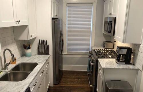 Beautifully updated loft with deck in Louisville's most popular location: the Heart of the Highlands on Bardstown Road. Comfortable, spacious 3-bedroom/2-bath unit is the entire 2nd floor of a 2-story building just steps away from great food and drink. You won't find a more convenient spot for your private getaway from home. Walk to some of the best in Louisville. Easy access to downtown, interstates, airport, parks. Many area businesses are open now!