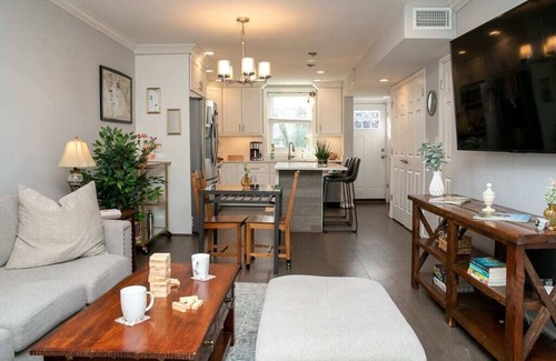 Chic, renovated townhome in Arlandria neighborhood adjacent to fun and popular Del Ray, minutes by car from travelers’ favorites Old Town, Alexandria and Washington, DC. Easy access to DCA. Grab a bite at one of the many walkable restaurants. Walk to Four Mile Run Sunday Farmers' Market on nearby trail. Or simply wander out back and catch a show at the Birchmere!