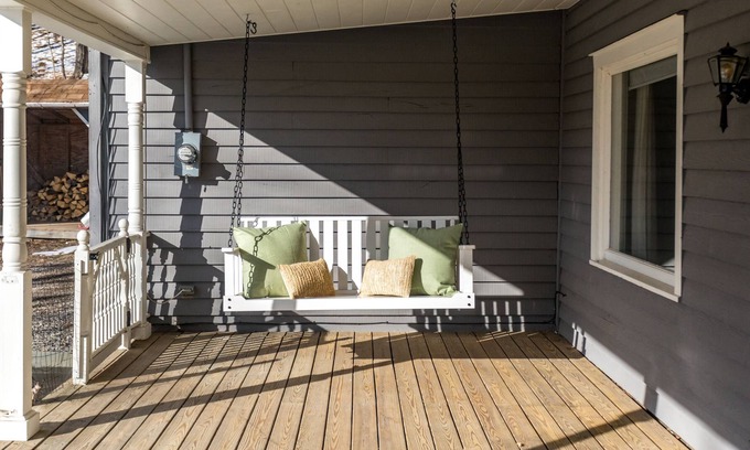 Step outside to enjoy the peaceful surroundings. The front porch is a great spot for a coffee break on the swing, while the backyard seating area is perfect for dinner and unwinding after a day's work. Make a fire and relax in the Adirondack chairs out front to take in the starry night sky.