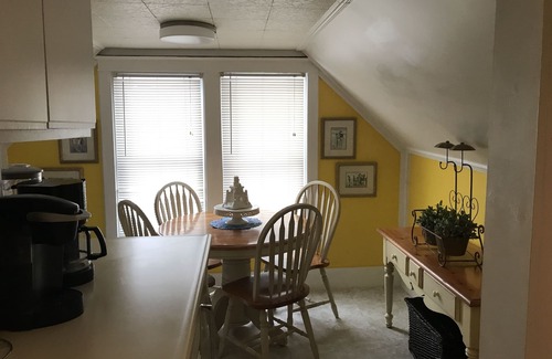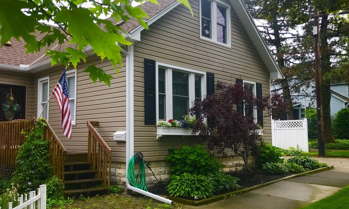 A two-story 4 bedroom 2 bath cottage just blocks from the beach, downtown St. Joseph, and many other attractions and points of interest. Up on the bluff, so you don’t have the crowds and the walk up the bluff to town. Perfect for one or two families. Sleeps 9, with kitchenette and breakfast nook upstairs and full kitchen and dining room downstairs. Parking for 2 cars and an easy walk to Silver Beach, Whirlpool Fountain, restaurants and many other local attractions. Free WiFi internet, Central AC. Charcoal grill. No yard but front porch for relaxing in this quiet, historic, old neighborhood in historic section of Old St Jo. This is not a commercial rental but our own home now offered to guests who appreciate homey ambiance. We are not professional rental hosts. We are an older retired couple who planned to live out our days in this house but necessity dictated a smaller one-story, so we decided to make our home available to families who want to experience old Saint Joseph as it used to be. This hundred year old house is full of good memories and we hope you enjoy adding to them.