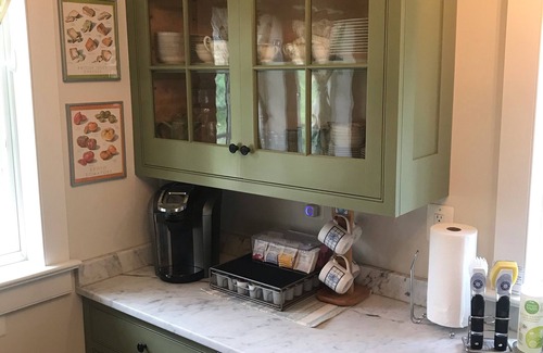 Property Overview: This 200+ year-old home was built in 1808 and is just a few miles from Oatlands Historic House and Gardens. This home can comfortably fit up to four adults. The main, tan coloredm house is where you would stay and is a fully updated federal home, lovingly restored with thoughtful attention to detail. The kitchen has marble counters, stainless steel appliances, gas range, double oven, a Keurig with a variety of coffee pods, spices to use, air fryer, and a deep farmhouse sink. There is also both antique and/ or modern china to choose from as well.