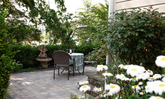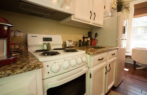 Stay in the circa 1860 art studio of renowned landscape painter, Lucien Whiting Powell. Powell's enchanting, restored studio features French Country decor, sprinkled with local antiques throughout. The original beadboard ceiling and walls, rustic beams, and hardwood floors capture days gone by. The tall windows allow for sundrenched living, however, blackout blinds in the bedroom assure total privacy and darkness for a good night's sleep.