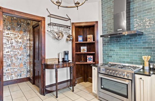Historical 4br - 4ba home in center of town. This home has the space and amenities for large groups and family gatherings. This home has character, space and relaxing energy for large groups of family and friends. Home is fully furnished with full linens, soaps and starter coffee and drinks