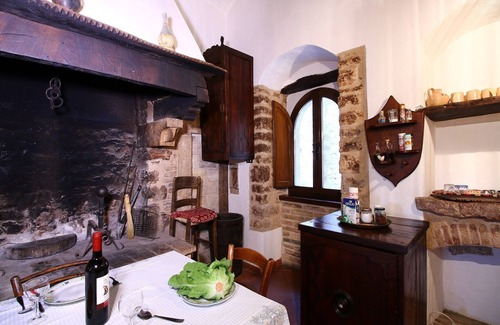 This enchanting castle near Gualdo Cattaneo offers a peaceful Umbrian escape for up to four guests, with a cozy living area, fireplace, and a well-equipped kitchen ideal for preparing local dishes. The bedroom with bunk beds and en-suite bathroom ensures comfort, while gas heating makes it a year-round retreat. Outside, enjoy a shared garden with barbecue, and a refreshing pool (May–Sept), plus easy access to forest trails just 100 meters away.