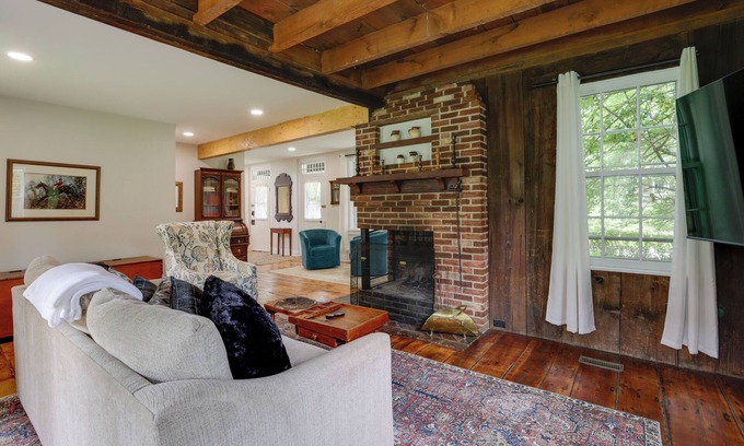 Explore Bucks County and beyond with this updated yet historic Erwinna vacation rental as your home base! The 2-bedroom, 2-bath home is steps away from the Erwinna Covered Bridge and a short drive from endless historic sites, hiking, and waterfront fun — perfect for history buffs and outdoor enthusiasts! Enjoy the lake at Nockamixon State Park, fish in the Delaware River, or visit the Washington Crossing Historic Park. At the end of the day, fire up the grill for a peaceful BBQ on the porch.