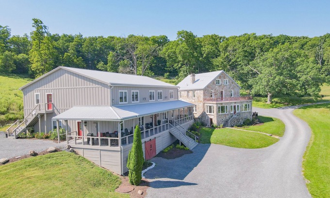 The Red Barn Inn is a beautiful and iconic 10 acre farm located in the heart of Deep Creek Lake. Established in the early 1800's, the Harvey Farm was a dairy farm for more than a century, changing to a potato farm in the 1900's, providing potatoes to Snyder's of Hanover. In 2002, the 10,000 sq foot barn was transformed into a classic, rustic, but elegant wedding and events venue and the inn itself was created to host the entire wedding party for a weekend of celebration.