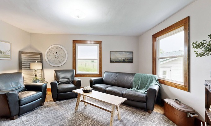 Escape to the charming town of Darlington, WI, and stay at this quaint farmhouse, a secluded and private retreat located right off the recreation trail for ATVs, side by sides, and snowmobiles. This historic home is located just 15 minutes from Yellowstone State Park, making it a perfect spot for families looking to explore the great outdoors. This homestead was originally part of the Underground Railroad in 1835, this cozy home was constructed in 1937, offering a unique blend of history and comfort.