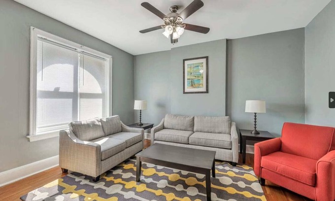 Newly furnished first floor unit perfect for groups of all sizes who are looking for a hassle-free trip to St. Louis. This property features 2 bedrooms, 4 Queen beds, and one bathroom. We are confident that your stay will be the best in St. Louis. Its central location and close vicinity to public transportation make getting to all of St. Louis hassle free. Located in McKinley Heights - one of the fastest growing and most lively areas of St. Louis.