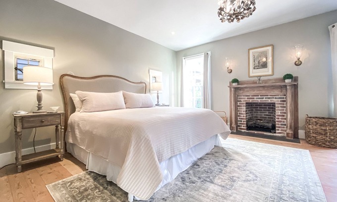 Enjoy our beautiful Garden Suite located in Historic Apalachicola. Expansive windows allows so much natural light and beautiful views of gardens and Historical Chestnut Cemetary. Park your vehicle and walk to all our beautiful town has to offer. This suite is very private, has its own entry, and a very comfortable King bed. The suite also has a nice sitting area with two accent chairs. The bathroom has a small but precious antique clawfoot tub equipped with a shower. We offer WiFi and cable streaming via YouTube TV. Don't hesitate to reach out with questions! Ask us about hosting your group!