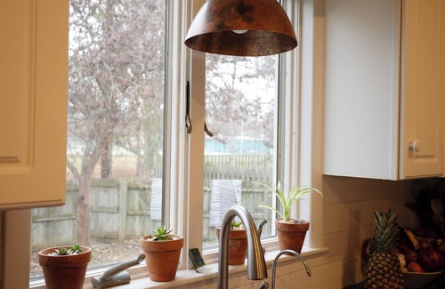 Discover the beauty and culture of the Ypsilanti and Ann Arbor areas from this 3-bedroom house. This charming property features 1 queen bed and 2 twin beds, perfect for a peaceful night's sleep. With heating to keep you cozy and a bathroom equipped with a bidet and bathtub, guests will feel right at home. Nestled on a quiet cul-de-sac and backing up to a peaceful neighborhood park, this charming 1931 home blends historic character with modern and eco-friendly updates. Surrounded by trees and gardens, the backyard feels like a private sanctuary and offers immediate access to walking paths, biking, and outdoor play.