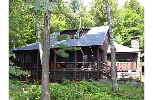 Step back into a more relaxed era in this historic Great Camp, built in 1908 and lovingly modified to preserve the birch bark walls and add modern comforts (think steam shower, spacious fire pit, Lean to with cook station…..)over the last few years. Wake up to beautiful sunrises from the screened in or glass enclosed portions of the wide front porch or the family friendly beach. Relax and make s’mores around the fire pit or grill in front of the original lean-to that seats 14 comfortably. Sleeps 10 with 5 bedrooms and 3 bathrooms.