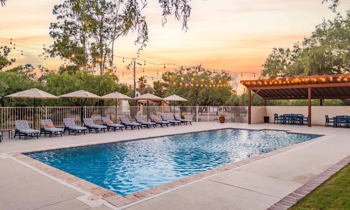 Solana Spanish Villas is a private estate with 6 houses on a stunning 5.7 acre oasis unlike any vacation rental in the Tucson area surrounded by lush grass and mature trees. Professionally managed to deliver the comforts of home plus the amenities of a mini-resort. This historic property offers Spanish charm with modern comfort nestled within manicured landscaping, amongst a mature Mesquite tree bosque, 150 year old Eucalyptus trees, green grass and desert wildlife.