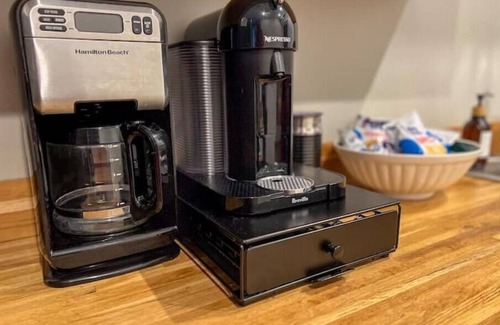 The kitchen has been designed to maximize your comfort and convenience. Well-stocked cabinet space, complete set of high-end pots and pans, an array of cooking utensils, and baking trays provide everything you need to cook a feast for your family and friends. We've also created a coffee corner stocked with coffee, creamer, and sugar. Also enjoy complementary chips, popcorn and granola.