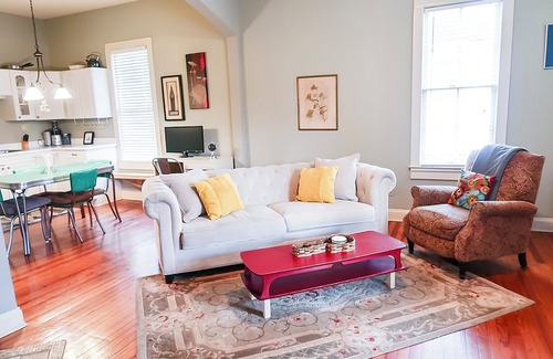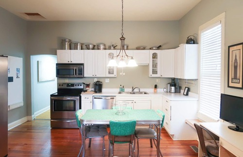 Located in trendy Five Points Dallas Mill District near downtown. Built in 1900. Restored & updated. Loaded with charm & everything you need to enjoy your time in Huntsville. Memory foam mattresses. Keurig coffee. Fully stocked kitchen. Open floor plan. Rate includes lawn care, Google WiFi and a $250 utilities stipend. Five minutes’ drive to restaurants, bars, and grocery in Five Points. Ten to downtown, Orion Amphitheater, U.S Space & Rocket Center or Monte Sano State Park.
