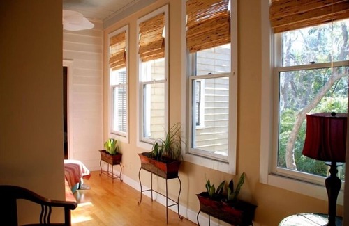 The home has been completely restored with a fully equipped kitchen, limestone tile, heart pine floors, new stainless steel appliances, and impressive antiques from Bali and Indonesia. The large master suite features a king bed, private bathroom with whirlpool tub, and a private sitting area. The 2nd upstairs bedroom has a king and single bed. The 3rd upstairs bedroom has two twin beds, and one queen bed. The 4th bedroom downstairs has a king bed. Wireless internet and cable TV are included.
