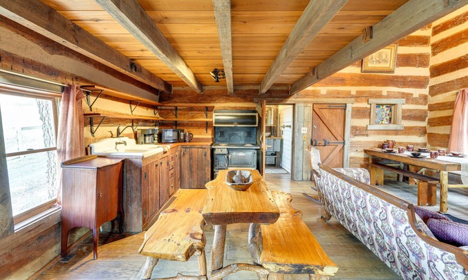 Craving a cozy Tennessee getaway? Look no further! With a charming and rustic interior, warm fireplace, and fire pit for s’mores, this traditional log cabin is perfect for your next Jonesborough vacation. Ride the sweet on-site horses or enjoy a board game with the family. This vacation rental also boasts a bedroom, 2 lofted sleeping areas, a bathroom, and a Smart TV for entertainment. When you’re ready to go out, visit the nearby Wetlands Water Park or hike through Warriors' Path State Park.