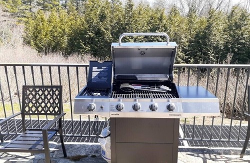Patio is equipped with dining table and seating for 4, umbrella, as well as a propane grill with all the tools you need to BBQ!