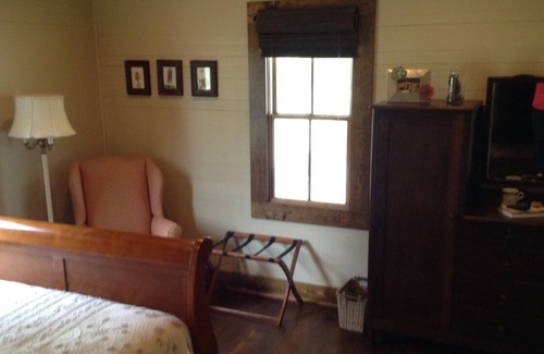 Huge brick fire pit surrounded by over sized rockers under beautiful lit tree. Perfect for marshmallows and yummy s'mores. Quiet country roads for hiking.